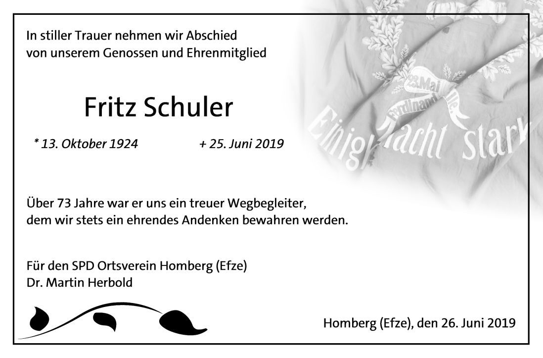 unser Ehrenmitglied Fritz Schuler ist am Dienstag verstorben. Fritz war über