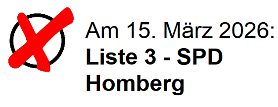 Wir sind bereit - die Homberger Sozialdemokraten treten mit 38 engagierten Kandidatinnen und Kandidaten zur Wahl der Homberger Stadtverordnetenversammlung an. Am 15. März 2026 bitten wir Sie daher um Ihre Stimme(n) für eine moderne, aufgeschlossene, besonnene Politik in unserer Stadt für die kommenden fünf Jahre.